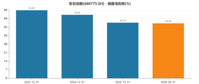 存储芯片等核心元器件价格的持续攀升,直接侵蚀了产品毛利率。与此同时,智能影像硬件赛道竞争白热化,头部厂商为争夺市场份额发起的“价格战”,迫使影石创新在“保份额”和“保利润”之间艰难权衡。多重因素影响下,公司2025年整体毛利率首次跌破50%的整数关口,2026年Q1进一步下滑至45%左右。