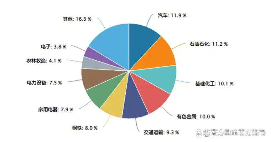 据wind数据显示,截至2026年3月9日,指数的前七大重仓行业分别为汽车、石油石化、化工、有色金属、交通运输、钢铁、家电。